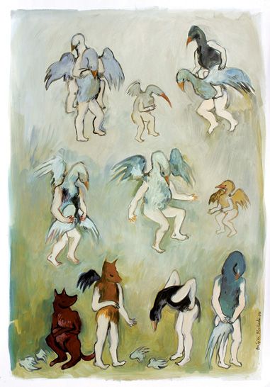 «Criaturas encantatórias e surreais, por vezes trocistas, reúnem-se na pintura. Oferecem-se ao voyeurismo. Cada uma vale por si, tem carater e estilo e, cada uma interage com a outra, a uma distância segura, numa rede animal. «Pintar depois de observar».