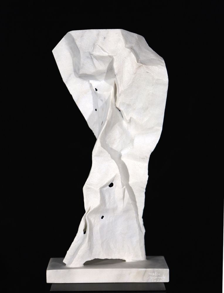 No inicio é sempre a matéria, depois uma lenta e paciente luta com o limite do material. Por vezes a ansiedade leva ao erro. A materialidade é também essência, o objeto é conceito. A pele é a fronteira do corpo no espaço e no tempo, Mas também é um muro que nos separa do universo, onde a memória é como o pó do mármore, leve de uma leveza insustentável.