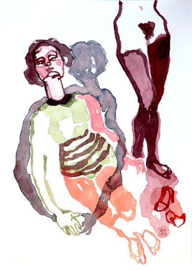 As sabinas conseguem escapar (esboço), caneta de feltro s/papel, 30x25 cm, 2005