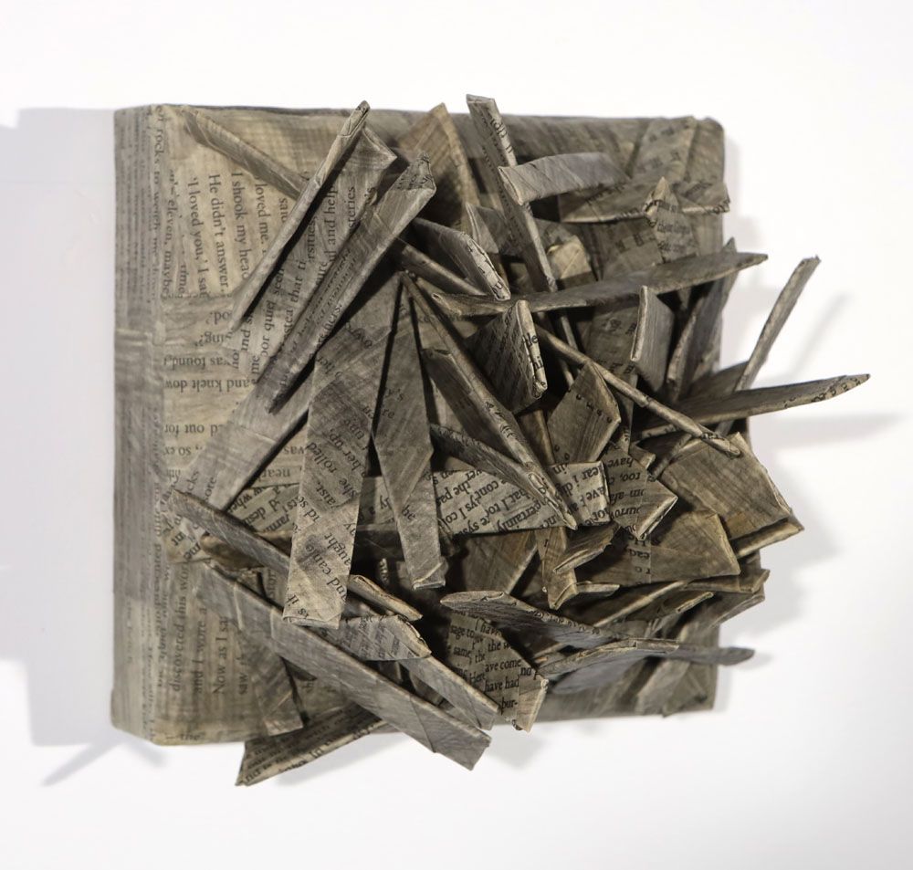 mdf, cola, lápis de grafite, paginas de livro / mdf wood, glue, graphite pencil, book pages | 9 peças/pieces 15x15x14 cm cada / each