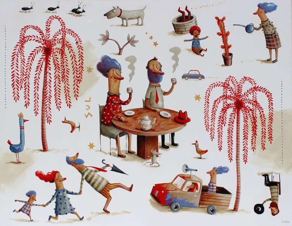 Personas en la playa Aguilar | 2023 | óleo s/papel em caderno Moleskine | Oil on paper on moleskine notebook | 36x57 cm