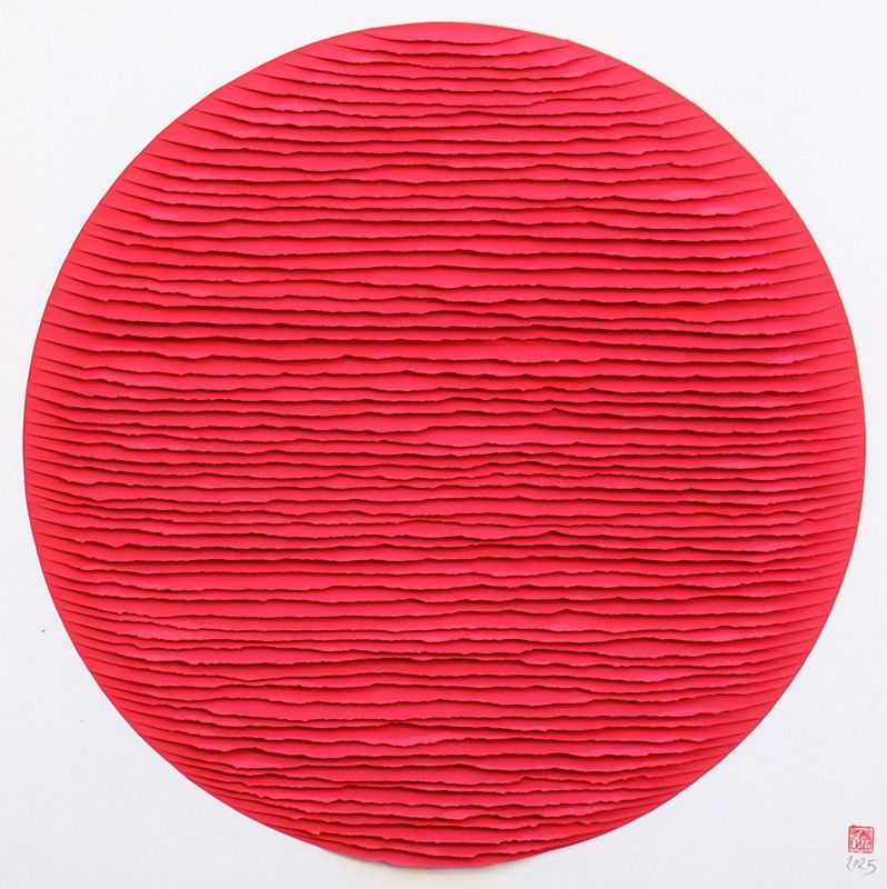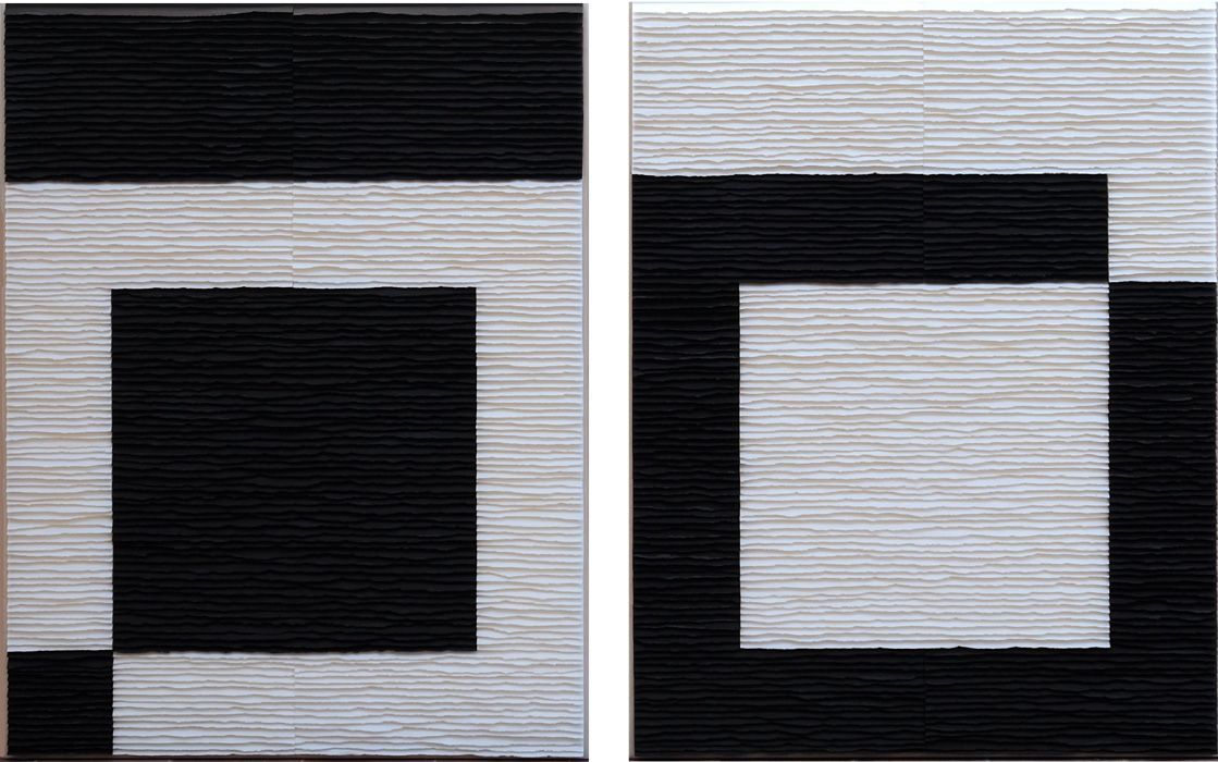 To create my works I use paper torn by hand into strips that I then stack in an orderly fashion and glue onto the canvas, following a compositional scheme that I have previously drawn in pencil on the support. It is a work made on canvas, a two-dimensional support traditionally used in painting, but its execution is three-dimensional due to the arrangement of the strips of paper glued slightly apart from the surface of the canvas, which provides a relief and uneven plane. By projecting natural or artificial zenith lighting, we get a soft contrast between light and shadows, which results in an immense and vibrant surface of visual textures. This is the most relevant and distinctive formal aspect that best characterises my work.