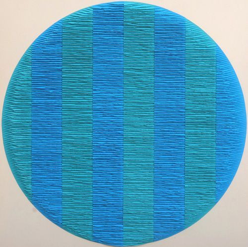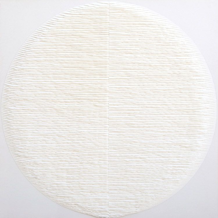 The technique I use is torn paper, my favourite process. I build up the surface on the canvas, overlapping previously torn strips of paper that I fix in parallel lines. The result is a work with a vibrant visual texture that changes in the eyes of the beholder according to the zenith of the incidence of light on the surface of the painting.