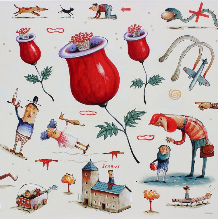 It follows the rigorous of visual discourse, a careful, elaborate language which serves to legitimise the content. Everything seems to be in its place. Everything seems to be thought out to the last detail. Nothing has been left to chance. So, it must be real. The utensils are credible, despite the most surreal uses of some of them. We do not doubt for an instant that the mechanisms work perfectly, the clocks, the vehicles, the tools. The characters, caught red-handed, know very well where they have been and where they are going.