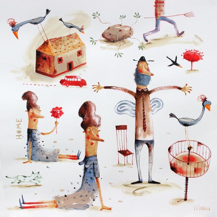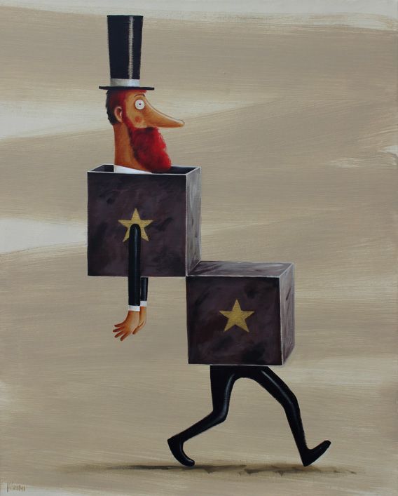 It follows the rigorous of visual discourse, a careful, elaborate language which serves to legitimise the content. Everything seems to be in its place. Everything seems to be thought out to the last detail. Nothing has been left to chance. So, it must be real. The utensils are credible, despite the most surreal uses of some of them. We do not doubt for an instant that the mechanisms work perfectly, the clocks, the vehicles, the tools. The characters, caught red-handed, know very well where they have been and where they are going.