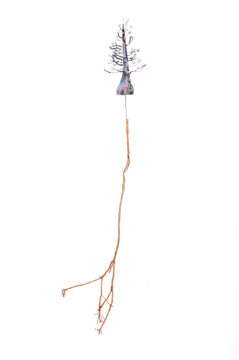Nota - China, ciprés chino. 10 yuanes, 2005 | 2021 | técnica mista, nota e raiz | 29x32x13 cm