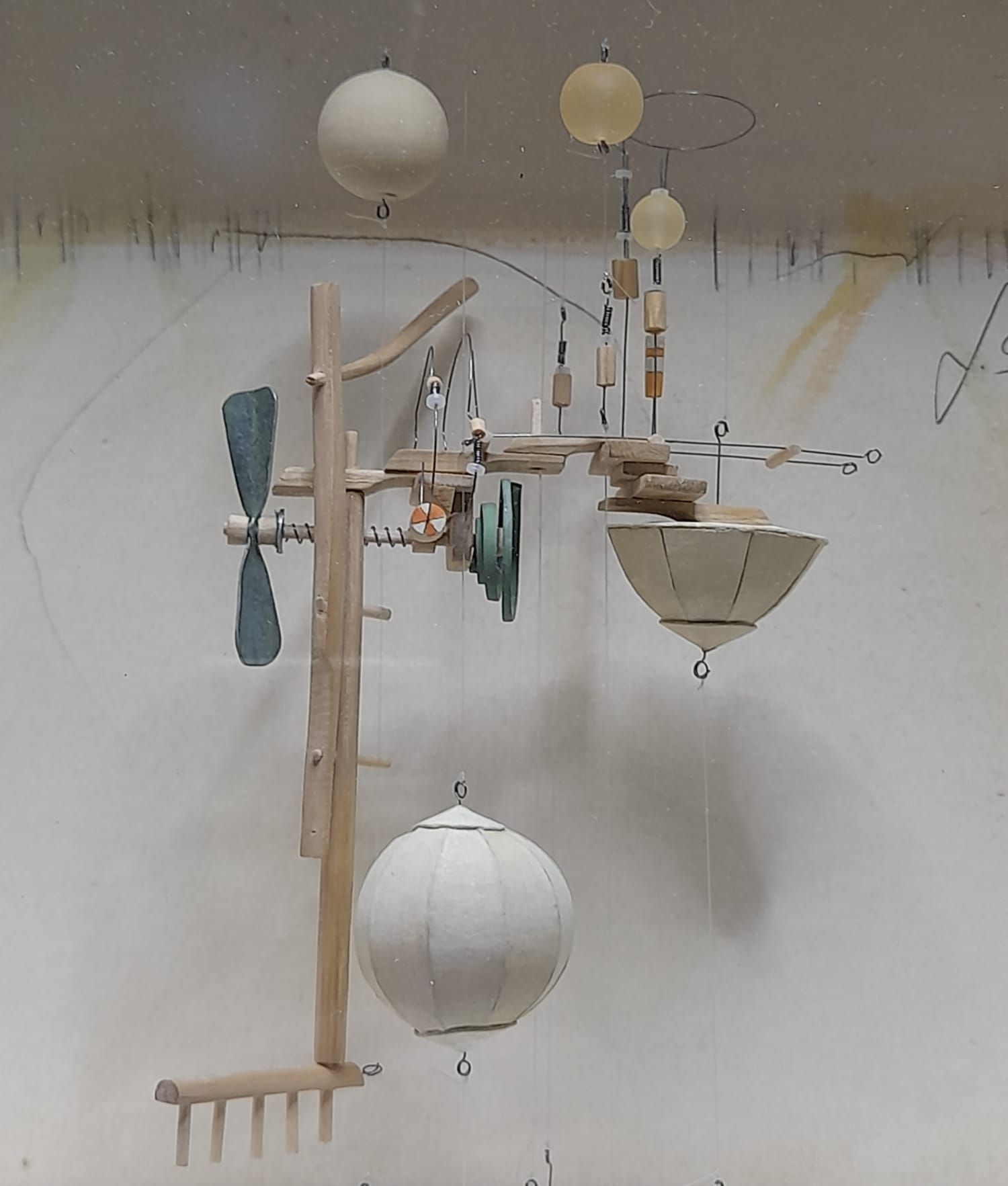 architecture of forms. His works are pure poetry for the senses, captivating us with their beauty and harmony. Built with basic materials such as wire or wood, often rescued from abandonment, these works are born out of a meticulous process that reminds us of the work of a goldsmith, which is built little by little in search of the perfect balance.